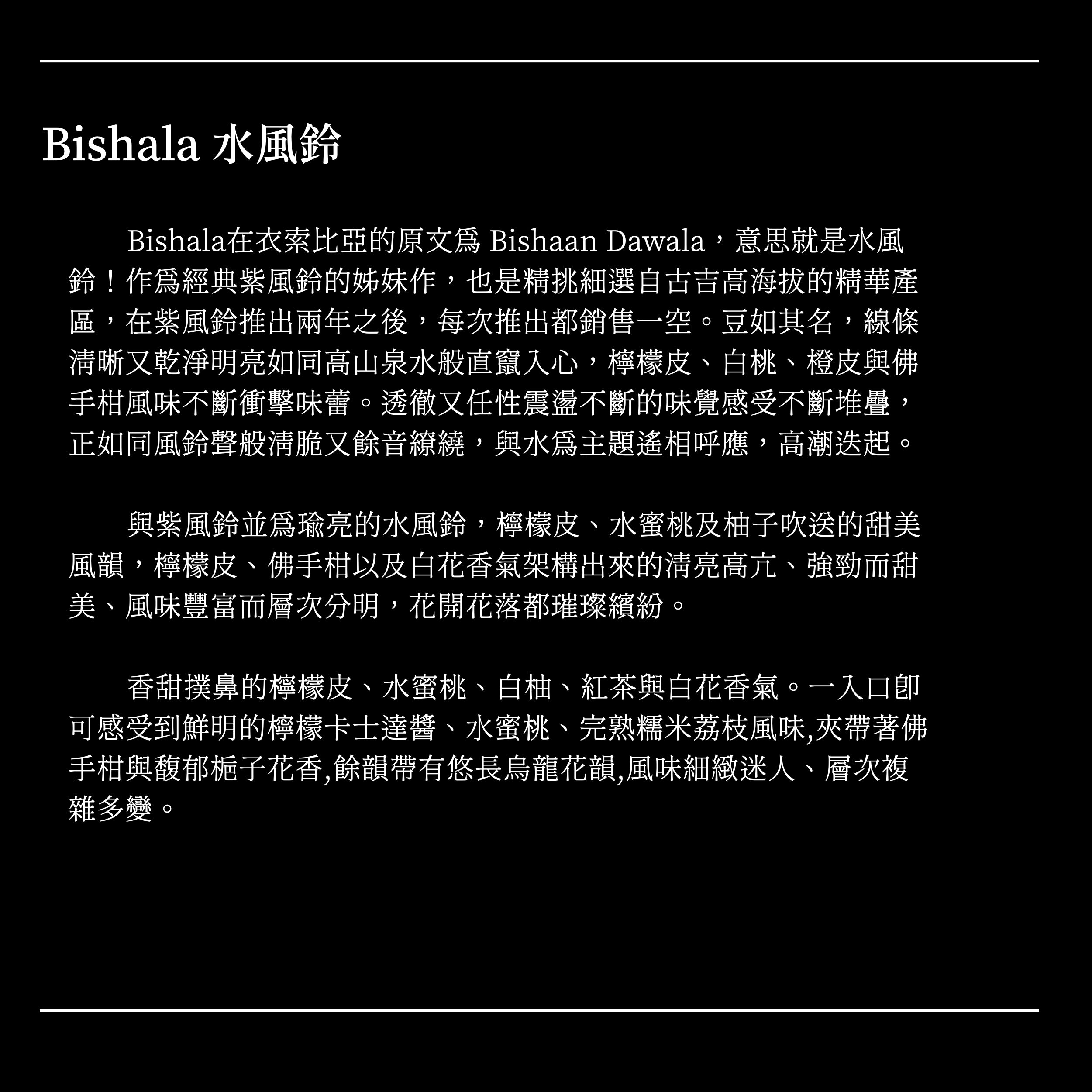 Bishala在衣索比亞的原文為 Bishaan Dawala,意思就是水風鈴!