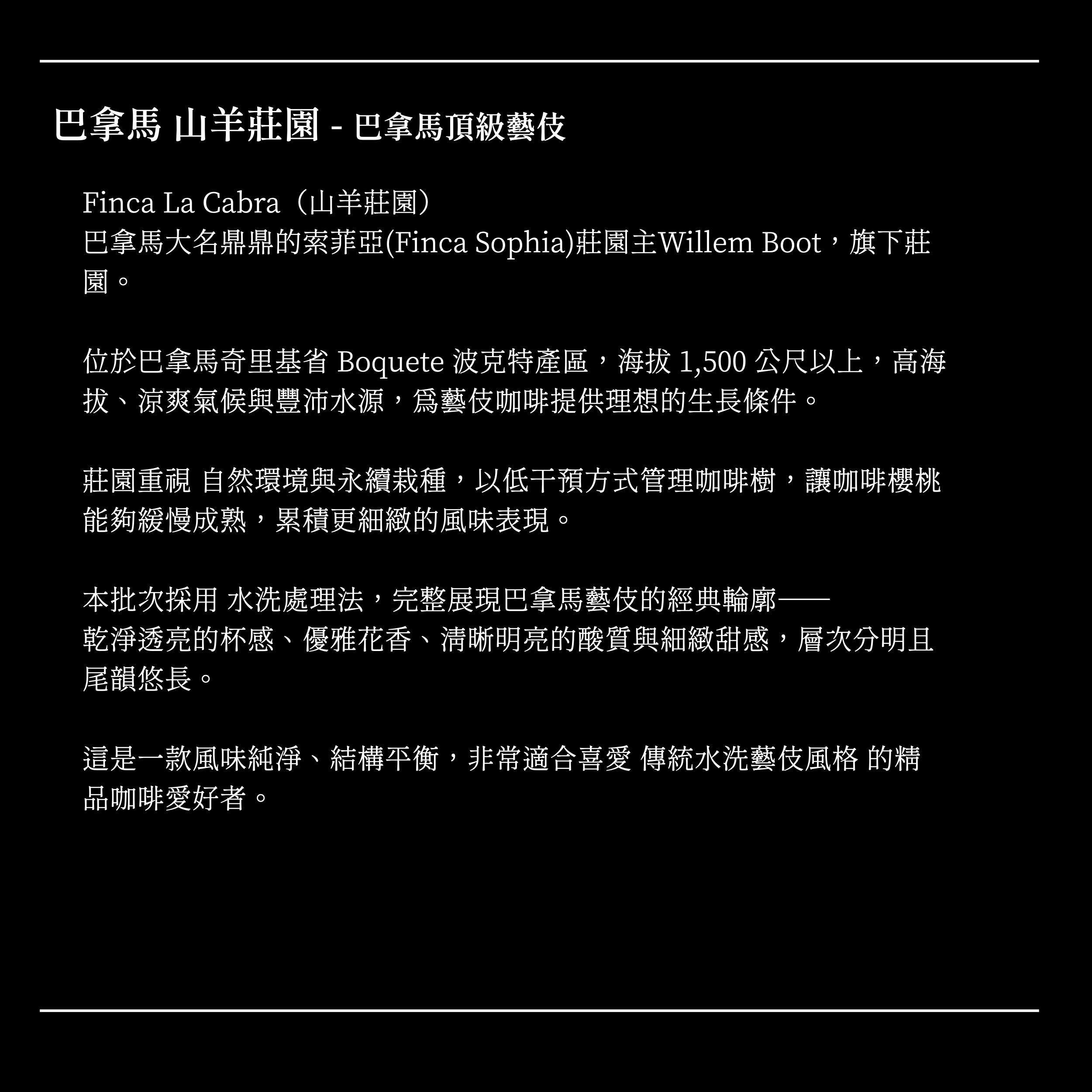 巴拿馬 波奎特 山羊莊園 藝伎 水洗|咖啡豆